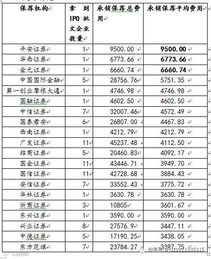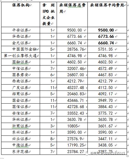 承销保荐平均费用最高的券商前三名:平安证券、华西证券、金元证券。