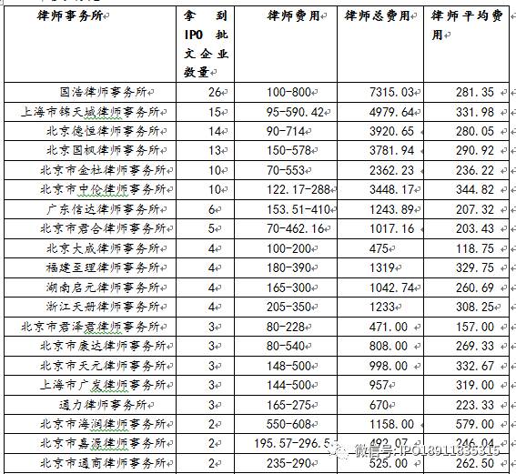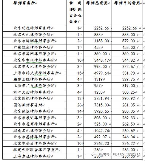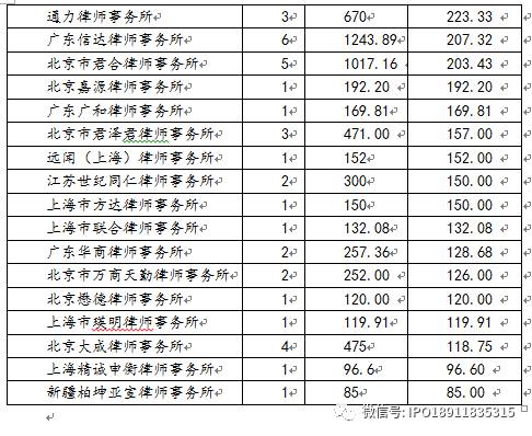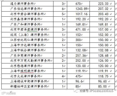 今年选取了157家已获得IPO批文企业已经公示了招股意向书,日期是前四个月。前四个月律师总费用为43775.44万元,平均费用278.82万元。