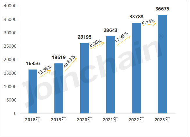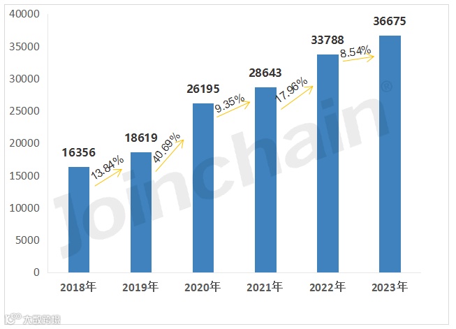 据众成数科(JOINCHAIN)统计,2018年至2023年全国医疗器械生产企业数量持续增长,截至2023年12月31日,全国医疗器械生产企业达36675家,较2022年底(33788家)增长8.54%。