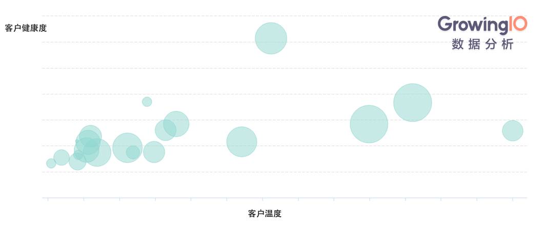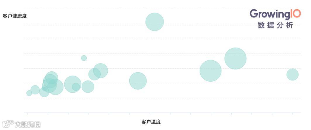 下面介绍的是气泡图,气泡图用来展示一个事件与多个维度之间的关系,如分析B端产品客户成单周期与客户活跃度、登录账号数量之间的关系。