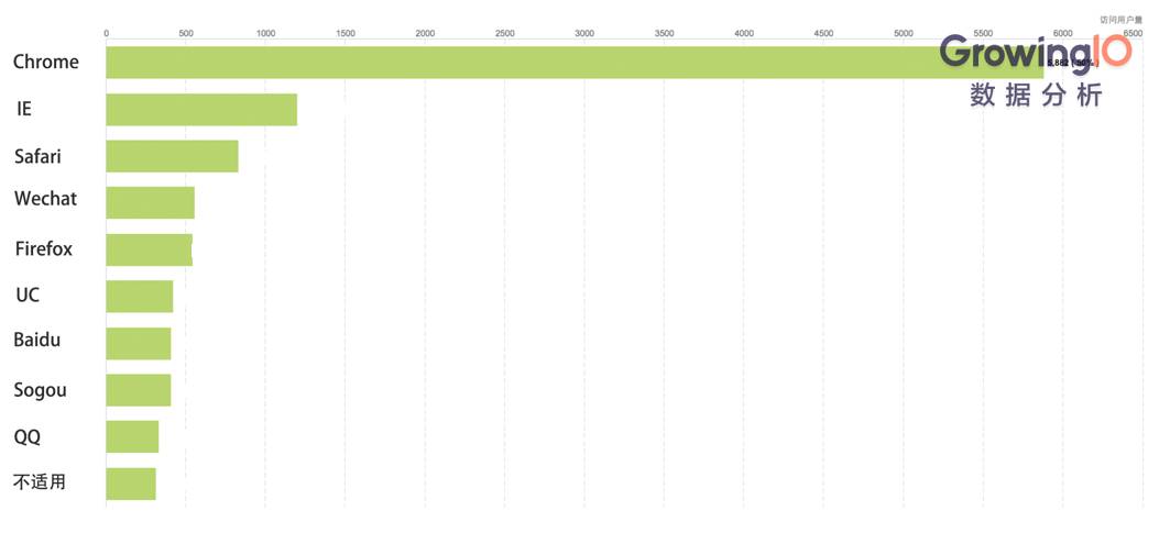 条形图清晰展示了用户在不同类别上的频数,并且按照数量从大到小排序。上图展示的是某产品用户使用浏览器的频数分布,在资源有限的情况下产品可以先适配Chrome和IE浏览器以提升绝大部分用户体验。