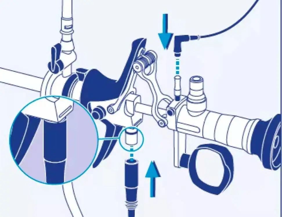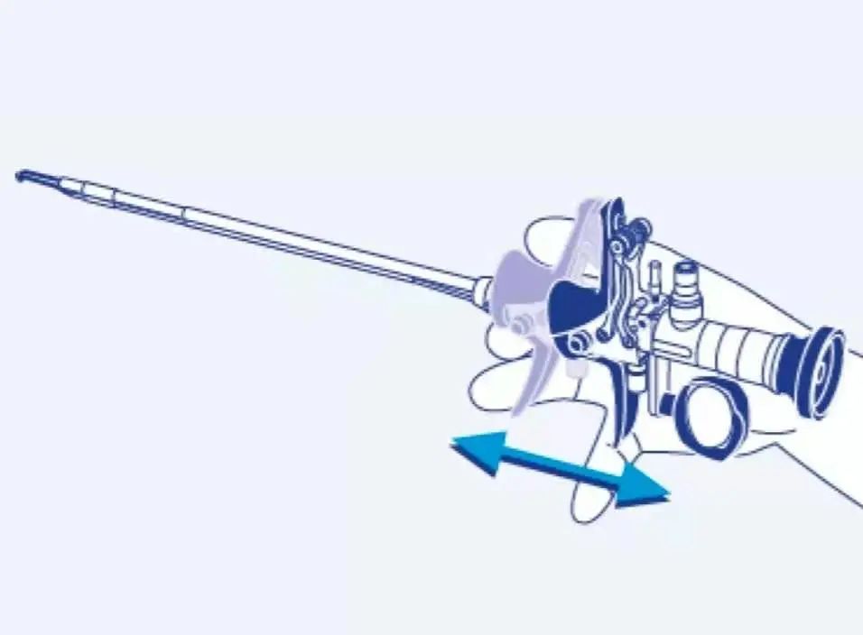 :手架上有弹性把手,可控制电极操作,另外还有插入镜头和作用电极的孔道。