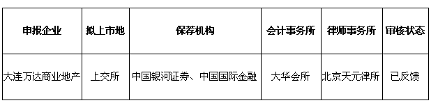 万达商业回归A股,现IPO排队处于“已反馈”状态