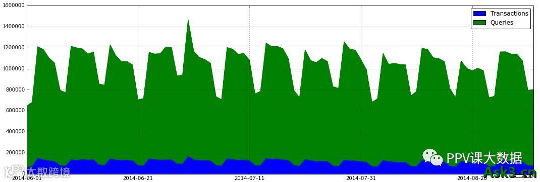 将日志时间加入透视表并输出每天的交易/查询比例图: