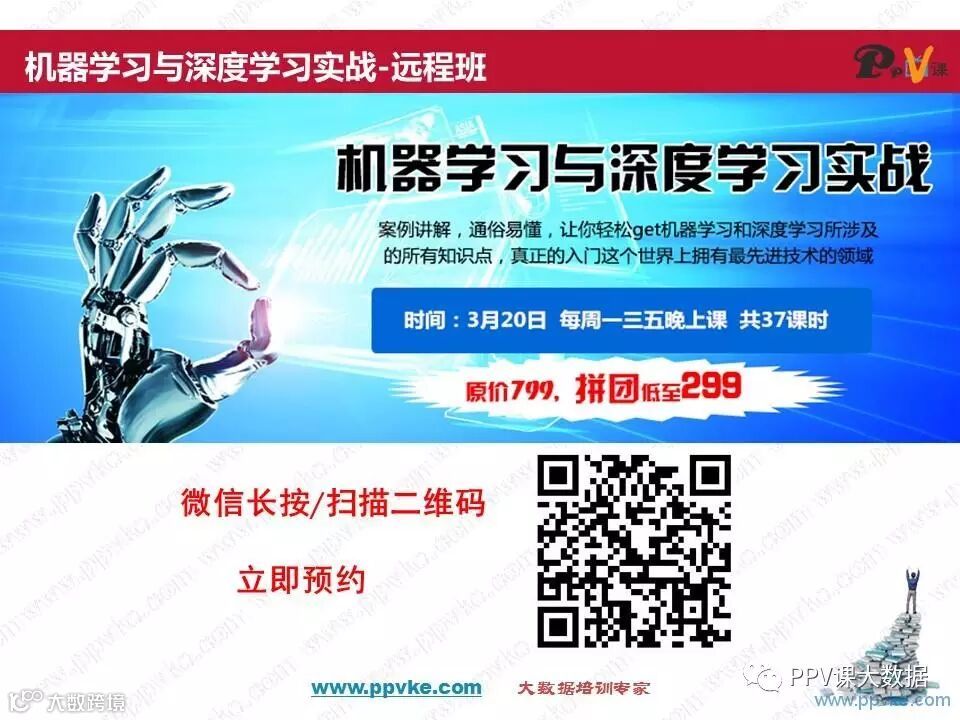 PPV课《数据大咖秀》第八期直播-人工智能与深度学习 已于1月13号直播完毕,现提供视频及PDF共享,错过的小伙伴快来补课,已看过的小伙伴可以温习哦!视频链接请直接点击”阅读原文“观看,PDF文档请在PPV课微信公众号回复”人工智能“获取下载。