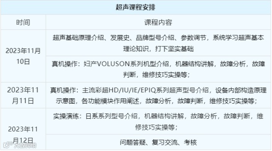 对于刚刚入行的医械工程师而言,可以在3天的充实课程中学到超声的维修技巧和方法,并能完成现场实操环节,加深理解。