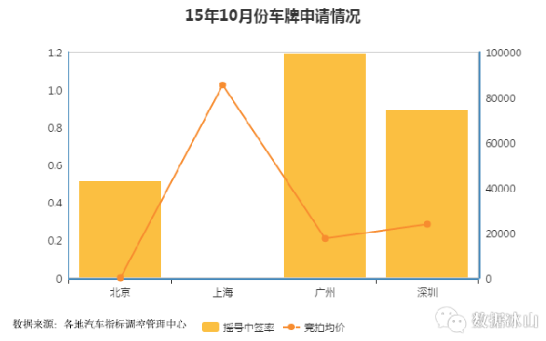 除了公共交通,私家车对于在城市里生活的人们来说无疑也是衡量幸福感的重要指标之一。目前北上广深均采取了限牌的策略,而想要获取车牌,目前只有摇号和竞价 2 种方式,我针对 15 年 10 月份四个城市 2 种方式的车牌申请情况进行了统计(0 表示该城市没有此种申请方式),广州无论从中签率还是竞拍均价上再次展现出了满满的幸福感。上海近乎 8 万的竞拍价格令所有国人唏嘘不已,或许这就是国际大都市该有的气质吧。