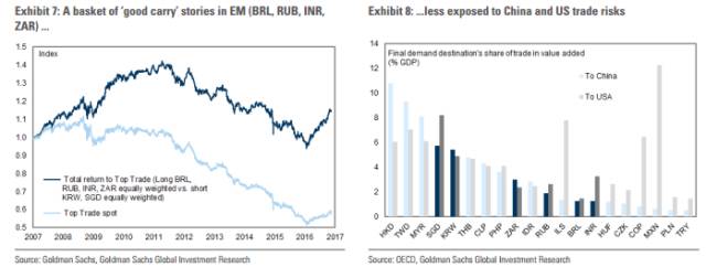 高盛称,看好同等权重做多巴西雷亚尔、卢布、印度卢比以及南非兰特,同时同等权重做空韩元和新加坡元。假设起始点位为100,目标位为114,止损位为95。预期收益为7%的套息和7%的价格回报,累计为约14%。