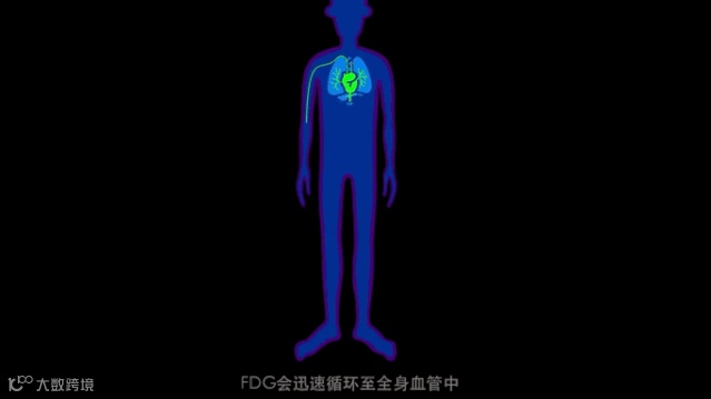 PET/CT常用的示踪剂是氟代脱氧葡萄糖18F-FDG。由于癌细胞消耗葡萄糖的速度比正常细胞快。在静脉注射18F-FDG后,18F-FDG会迅速循环至全身血管并大量聚集在癌变细胞。使用PET/CT扫描患者时,聚集大量18F-FDG的癌变细胞会呈现“亮点”。