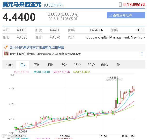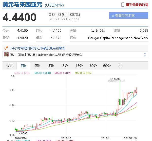 马来西亚林吉特跌至10个月新低,自11月8日以来累计贬值4.9%。