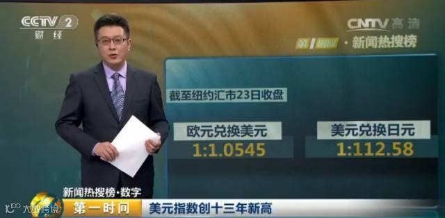 数据显示,衡量美元兑六种主要货币汇率的美元指数周三盘中上升至101.69点,高于周二收盘时的101.01点,该指数盘中最高触及101.78点,为2003年4月份以来的最高水平。截至纽约汇市尾盘,1欧元兑换1.0545美元,1美元兑换112.58日元。