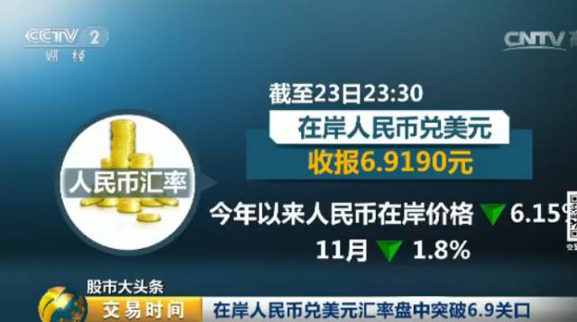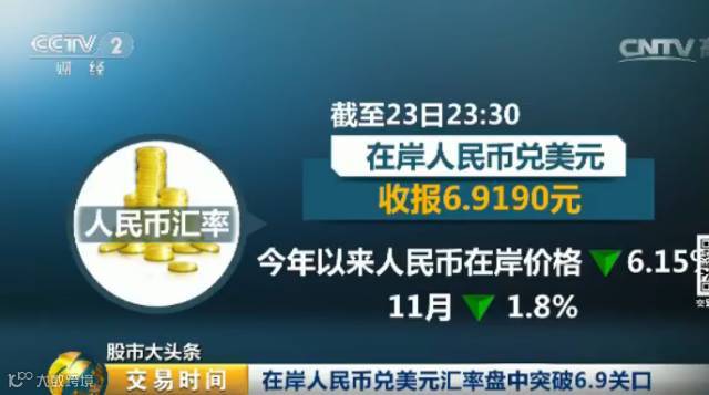 昨天23:30,在岸人民币兑美元报价突破6.9元关口,达到6.9190元,创2008年6月份以来收盘新低。今年以来,人民币在岸价格已经下跌6.15%,其中11月的下跌幅度最大,截至昨天11月的下降幅度达到了1.8%。而离岸人民币兑美元波动幅度更大,昨日盘中触及6.9566元的纪录低位,截至昨天,11月离岸人民币兑美元的下跌幅度为2.58%。