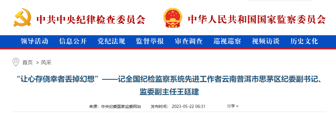 紧接着,王廷建带领专案组从杨某俊受贿案中深挖线索、扩大战果,揭开了普洱市人民医院腐败窝案的盖子,先后查处了该医院7名公职人员受贿和13名供货商行贿问题。