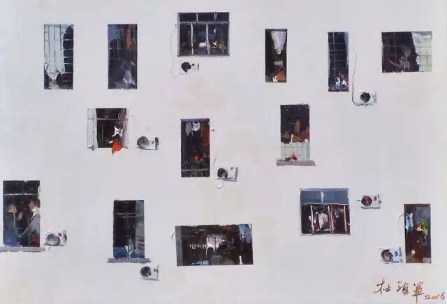 ▲ 油画:挂满空调外机的墙 60x60cm(局部)|杜海军作品