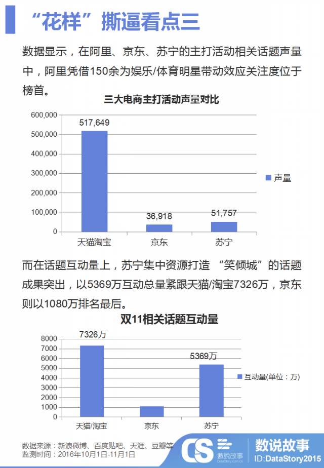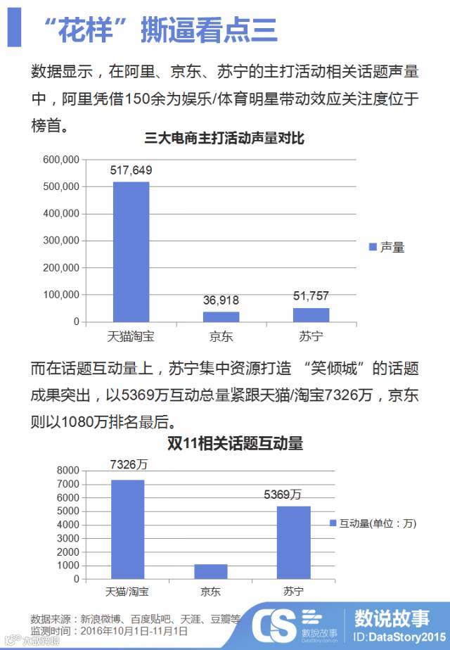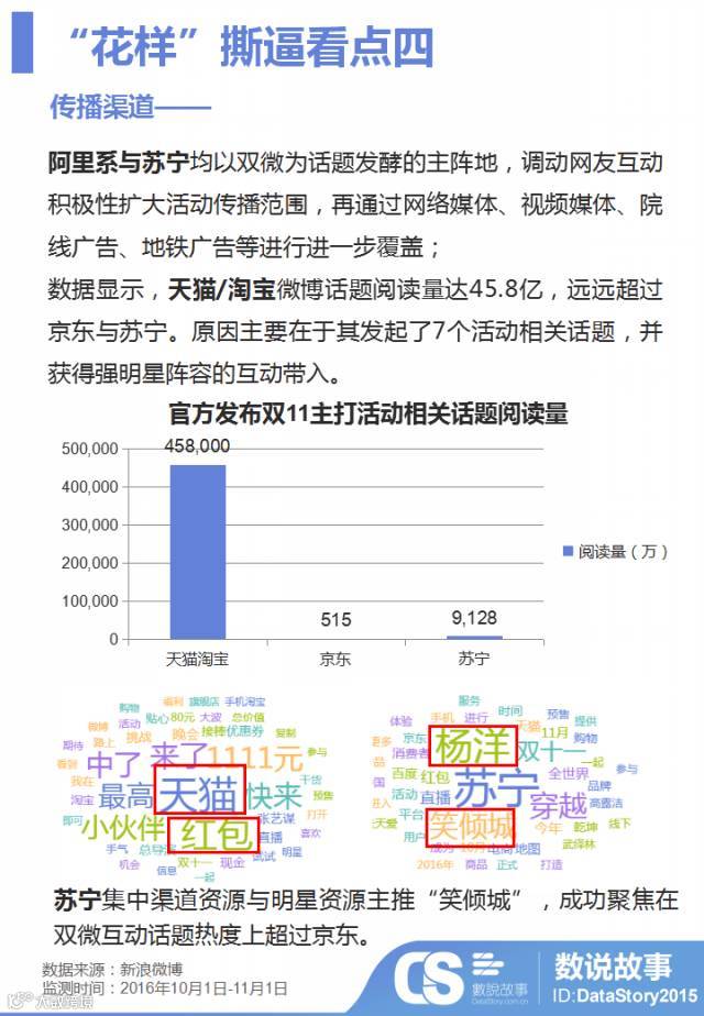 强化互动性。营销活动环节注重与受众的互动往往会收获翻倍的传播效果,阿里、苏宁的微博话题制作就是很好的例子。