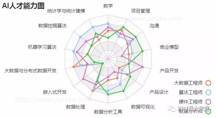 从这张能力图中可以看到, 数学和统计学已经成为数据科学相关职位的核心技能。