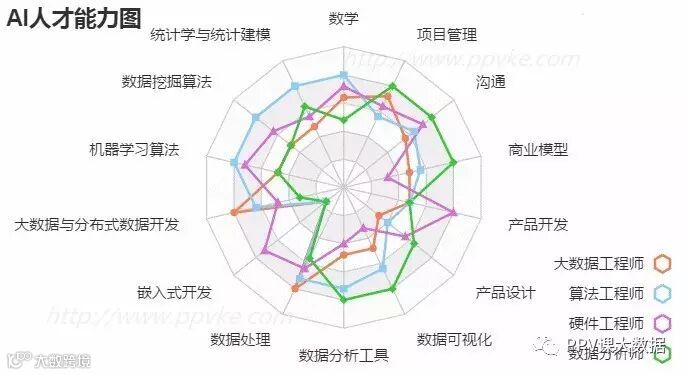 支撑AI发展的基础技术在AI时代会继续快速发展。大数据、数据挖掘、机器学习与深度学习等领域需要大量懂数据,会技术,能应用的人才,清华大学计算机系教授武永卫在2016年5月的中国大数据产业峰会上表示,中国未来3-5年需要180万数据人才,而目前仅有30万,缺口达150万人之多。招聘网站的数据也反映了这一点,猎聘网上的数据分析相关职位在短短一年时间内增长了300%,高端数据人才的薪酬也是水涨船高,年薪50万已经司空见惯。我国需要的数据人才涵盖大数据工程师、算法工程师、硬件工程师、数据分析师等类别: