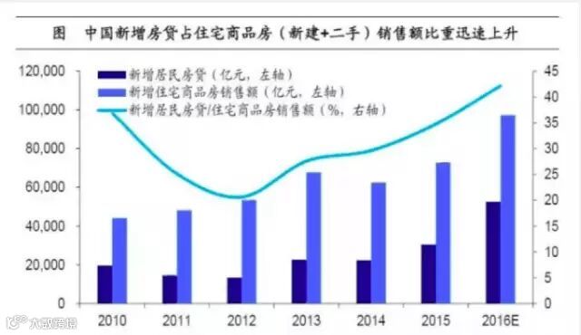 美国次贷危机发生前,也就是2007年的峰值是52.6%。数据显示,2015年我国新发放贷款规模4.7万亿,新房销售额7.3万亿,二手房销售额3.6万亿,交易杠杆43.12%。