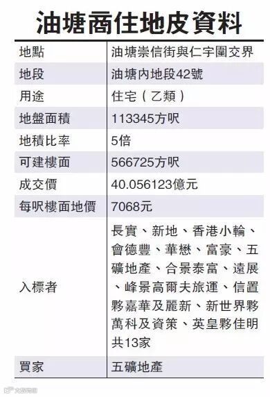 笔者认为上海中兴社区地王最具指标性的意义之一就是,让香港楼市黯然失色。举例来说,8月4日,香港也有一块在位置等各方面和上海中兴社区类似的地皮被中国内地企业拍得,情况具体如下: