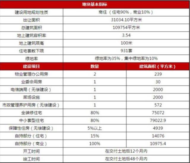 这次出让的土地为两块相邻地块,总出让面积为31034.1平方米,容积率3.54,住宅占90%,商业占10%。不过,建筑限高100米,而在90%的住宅面积中,出让条件规定了有近3000平方米的配套设施,5000平方米的保障房,14000平方米的自持房;同时,地块中小套型住宅面积不得低于总住宅建筑的80%。