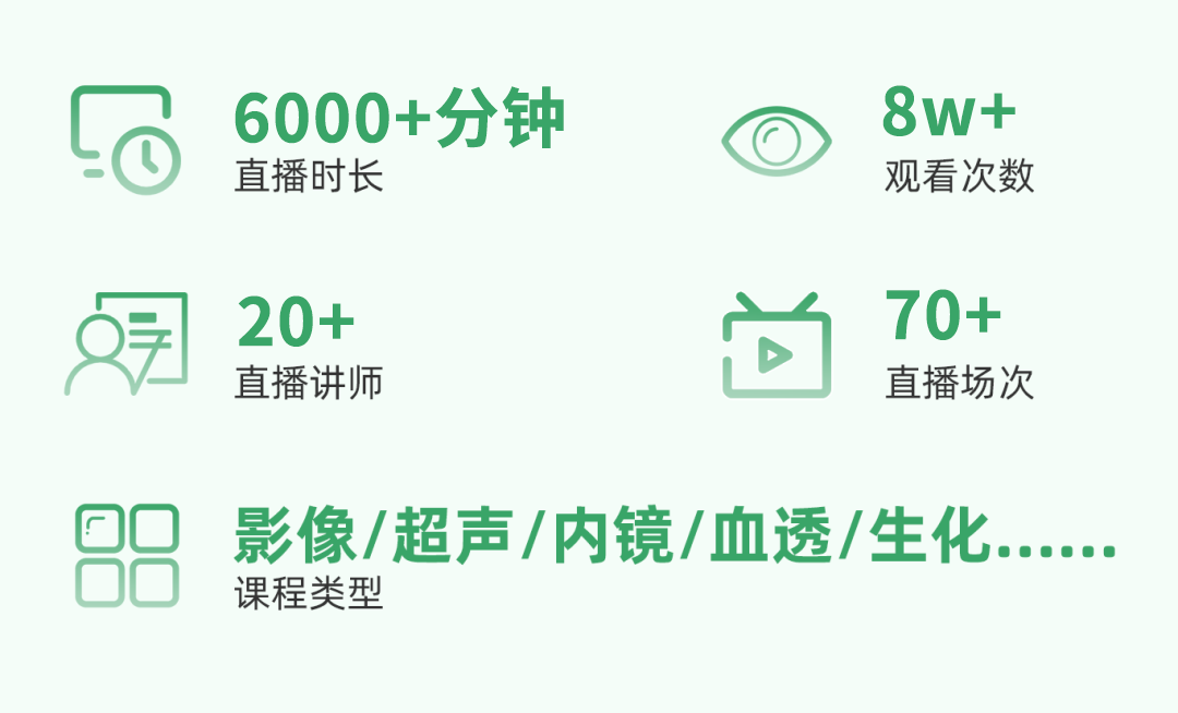 匠医工医械平台专注于医械知识分享,自开播以来,匠医工累计直播70+次,观看人数达到8W+,讲师团队20+,平台已开设超声、探头、内镜、影像、血透等系列课程,总时长达到了6000+分钟。
