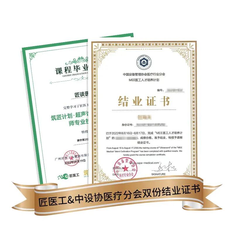 目前,已有100+医械同行通过培训考核,获得双证(匠医工平台颁发课程毕业证书,中国设备管理协会医疗行业分会颁发结业证书)。