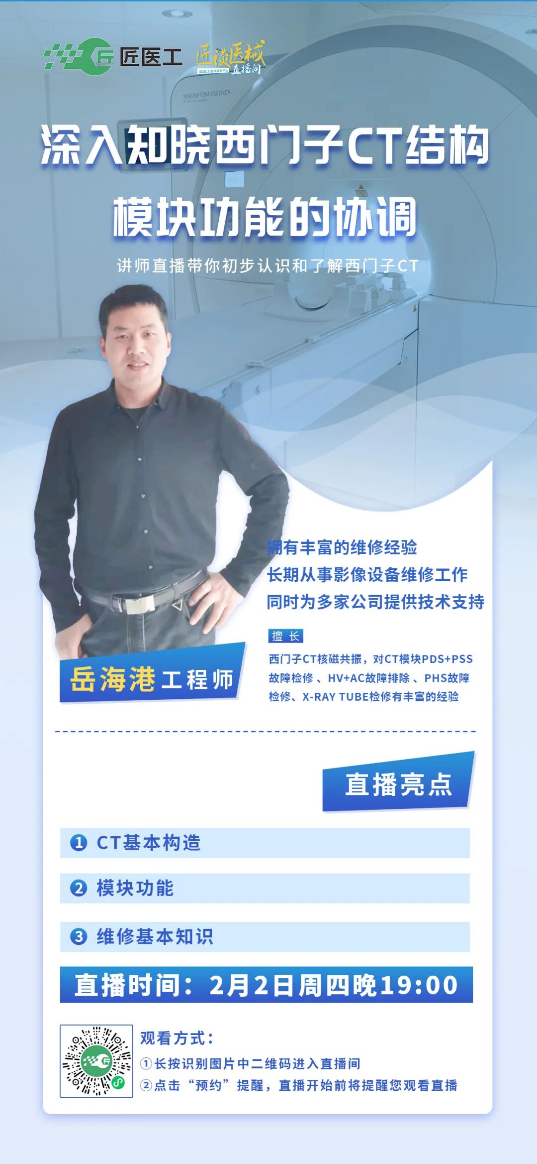 【匠谈医械 】2月2日,影像直播课程来啦~【深入知晓西门子CT结构,模块功能的协调】 匠医工医械服务平台