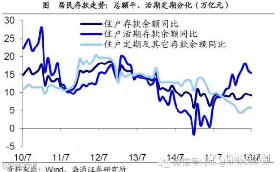 15年下半年至今:财富回流房地产,带动居民存款流向企业部门。从去年下半年开始,以股市大幅震荡为标志,情况发生了一定的变化。第一,以银行理财为代表的金融产品收益率下降,这使得居民存款向金融资产搬家的过程虽仍在进行,但进度有所减缓;第二,定期存款利率仍在继续下行,因此定期存款相对活期存款的吸引力继续下降;第三,房价的不断上涨驱使居民(尤其是一线城市居民)进入房地产市场,居民财富配置有“再房地产化”的苗头。