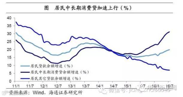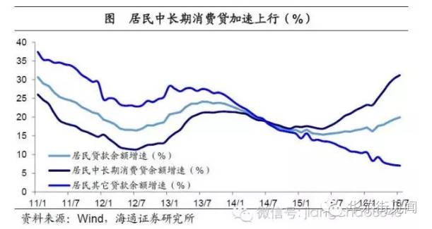 房贷增速飙升。15年以来,居民财富配置再次向房地产倾斜。与此同时,居民贷款增速则大幅走高,今年上半年居民贷款增速接近接近20%,远超存款增速,其中对应房贷的居民消费性中长贷增速已超30%,而反观居民其他贷款增速则大幅缩水至7%。这说明居民购房资金主要来自于居民贷款,居民贷款猛增主要用于买房。居民房贷通过房地产市场,流向了企业部门,为推高M1埋下了伏笔。