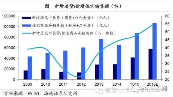 15年以前:居民财富配置金融化、缓慢去房地产化。15年以前,中国居民财富持续由银行存款和房地产向金融资产转移。根据社科院的统计,04-14年间,房地产资产占居民总资产的比重从61.5%缓慢下降到53.8%。14年居民新增财富中,配置占比最大的资产包括房地产、理财资金、存款和股票,分别占到了40%、17%、16%和12%。而14-15年的金融市场大牛市,更加速了居民财富从存款和房地产向金融资产搬家的过程。