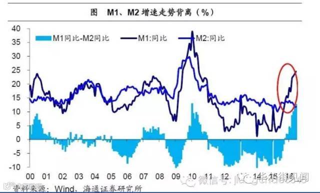 持币成本降低导致企业存款活期化,进而推高M1、M2剪刀差,但却无法解释以下两个现象:第一,15年底以来定期存款基准利率停止继续降低,但企业活期、定期存款增速却继续快速分化,企业存款仍在快速活期化。第二,虽然从结构上看企业存款经历了活期化的过程,但15年以来企业总存款增速也在大幅上升。这说明持币成本下降并非是企业存款活期化、M1增速大幅上扬的唯一原因。