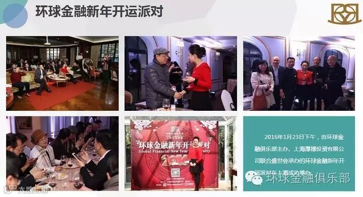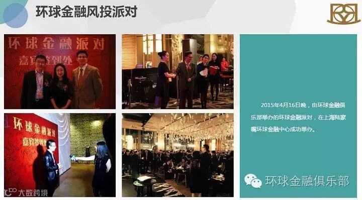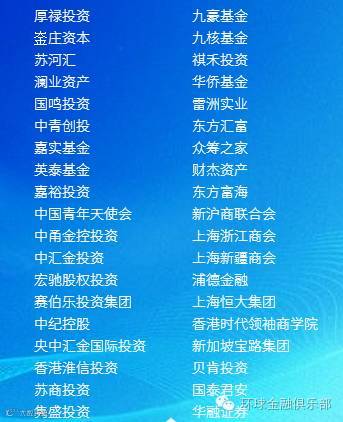 俱乐部介绍:“环球金融俱乐部”系由上海厚禄投资有限公司实际运营的品牌,上海厚禄投资系一家为企业提供定制化、多样化和系统化股权融资服务的平台+直投型投资公司,通过线上平台和线下活动,整合项目、资金和渠道资源,开展融资前辅导、融资服务、挂牌上市、并购重组、市值管理、基金募投等全方位、多层次的资本市场服务。概括为