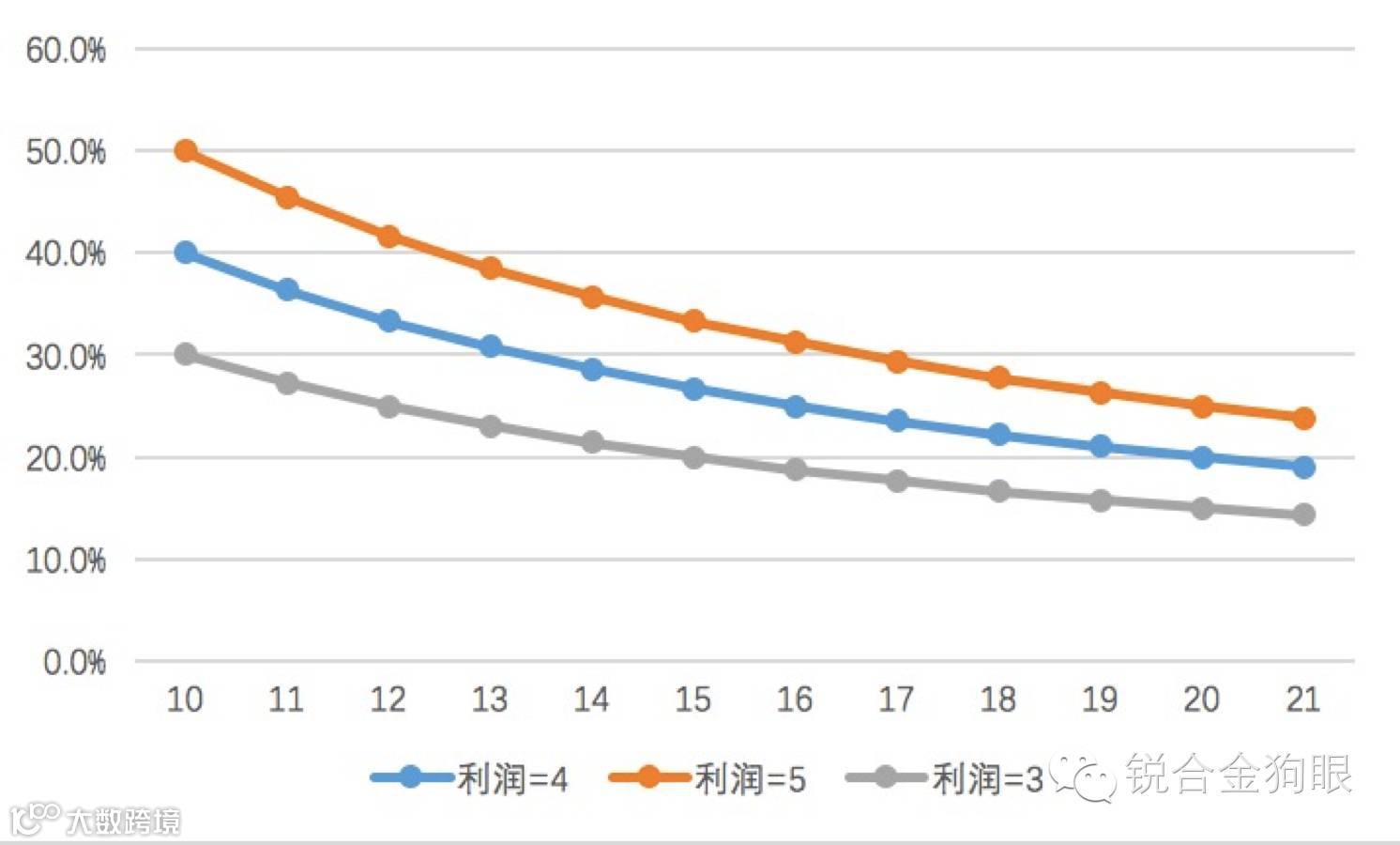如前图三所示,我们可以把三个变量的角色进行了分解:收入当做自变量,利润当做因变量,而利润率则是作为约束条件,在不同的约束条件下,随着收入的变化,利润也随之变化。