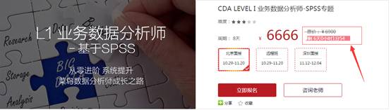 CDA数据分析师Level I课程,带你从业务数据分析开始,稳扎稳打,带你有组织有纪律的走上数据科学家之路! 考试前最合适的一期课程,SPSS方向课程优惠现场6666元,远程4688元,仅剩三天,再不学习就晚了!