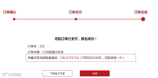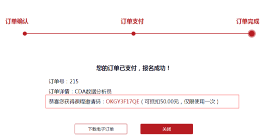 同时,如果你成功购买了一个课程,你还会获得一个课程优惠码,课程优惠码可以用于其他课程的购买,也可以转送给同事和朋友。