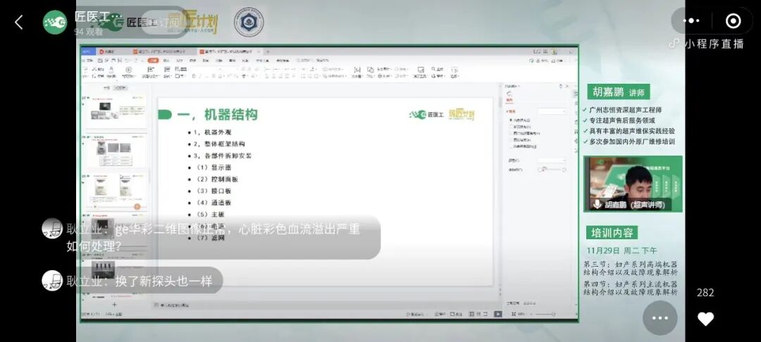 本期课程由广州志恒医疗资深工程师——胡嘉鹏倾情授课,为大家带来超声知识,让线上学员收获颇丰,引起热烈反响。