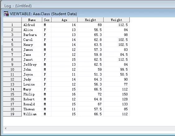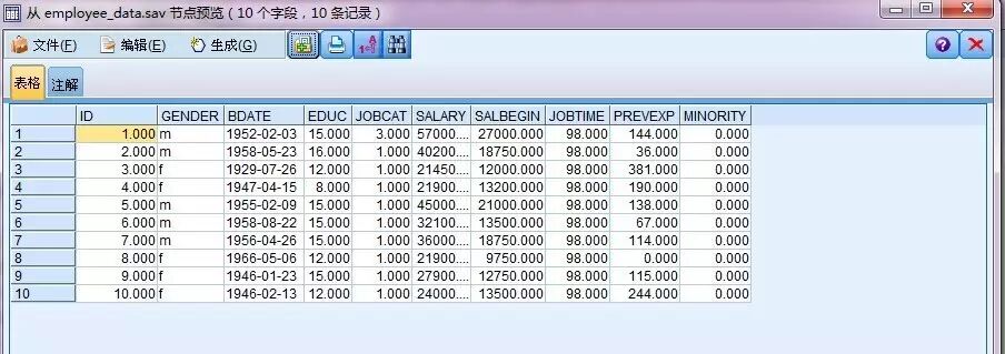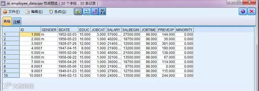 SAS数据集的读取可以使用pandas模块中的read_sas函数,我们不妨试试该函数读取SAS数据集。下图是使用SAS打开的数据集,如果你的电脑中没有安装SAS,那你也可以通过Python实现数据的读取。