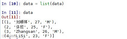 我们发现data中存储的是元组格式的数据集,我们在《Python数据分析之pandas学习(一)》中讲到,构造DataFrame数据结构只能通过数组、数据框、字典、列表等方式构建,但这里是元组格式的数据,该如何处理呢?很简单,只需使用list函数就可以快速的将元组数据转换为列表格式的数据。