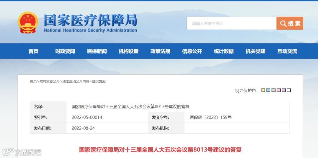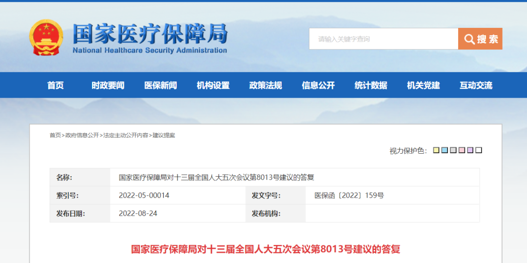 ▲《国家医疗保障局对十三届全国人大五次会议第8013号建议的答复》