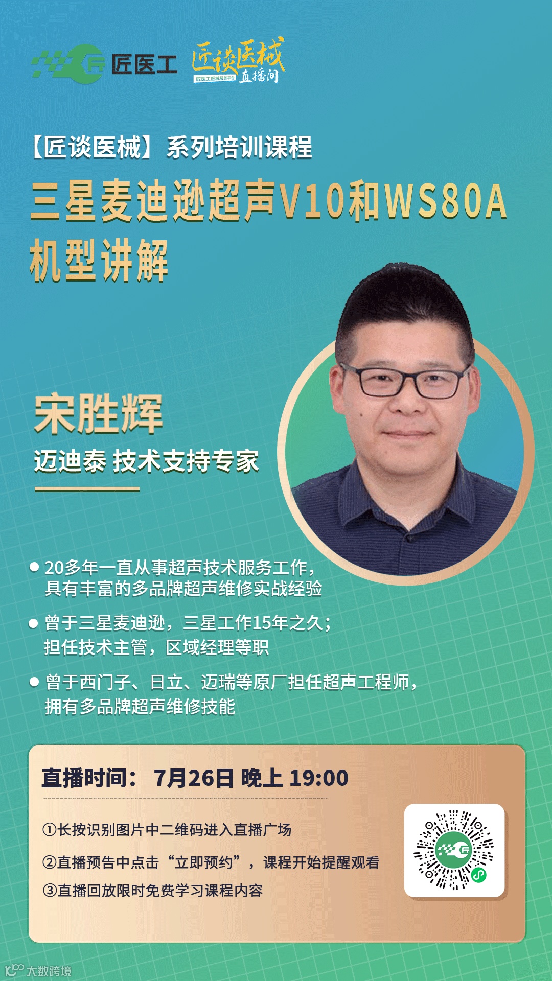 【匠谈医械】7月26日晚7点,三星麦迪逊超声V10和WS80A机型讲解,宋老师第二场直播课程提前约起来! 匠医工医械服务平台