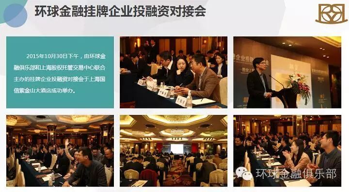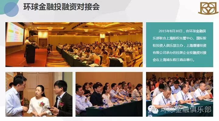 俱乐部介绍:“环球金融俱乐部”系由上海厚禄投资有限公司实际运营的品牌,上海厚禄投资系一家为企业提供定制化、多样化和系统化股权融资服务的平台+直投型投资公司,通过线上平台和线下活动,整合项目、资金和渠道资源,开展融资前辅导、融资服务、挂牌上市、并购重组、市值管理、基金募投等全方位、多层次的资本市场服务。概括为