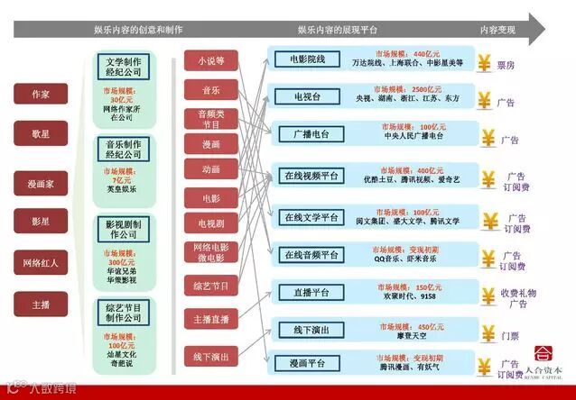 泛娱乐目前在一级和二级市场都受到广泛关注,也是笔者所在团队的重点投资方向。由于泛娱乐的内涵和外延都很广泛,可以从内容形式上把大行业分为文字、音频、图片、视频,分别对应如文学、声音、漫画、视频等。笔者所在团队投资和重点考察过手游、影视剧、经纪公司、综艺节目、线下演出、网络文学等平台或公司。现根据一手调研信息对整个行业的各个环节做简要梳理,整体偏互联网娱乐一级市场投资,主要是自我整理一下大行业的投资逻辑以供备忘。