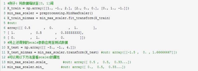 另外一种标准化方法是将数据缩放至给定的最小值与最大值之间,通常是0与1之间,可用MinMaxScaler实现。或者将最大的绝对值缩放至单位大小,可用MaxAbsScaler实现。