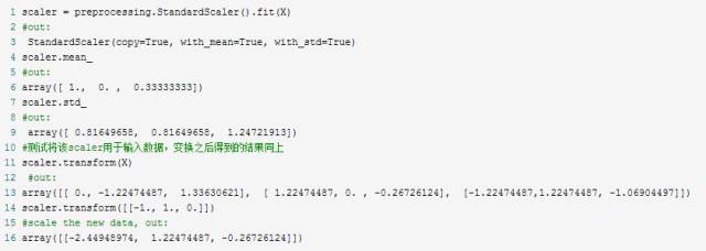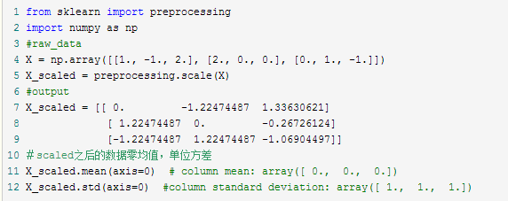 1.2 StandardScaler----计算训练集的平均值和标准差,以便测试数据集使用相同的变换