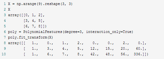 然而有时候我们只需要特征的交叉项,可以设置interaction_only=True来得到: