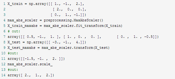 与上述标准化方法相似,但是它通过除以最大值将训练集缩放至[-1,1]。这意味着数据已经以0为中心或者是含有非常非常多0的稀疏数据。