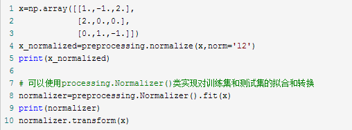 normalize 和 Normalizer 既接受稠密数据(dense array-like),也接受稀疏矩阵(from scipy.sparse)作为输入