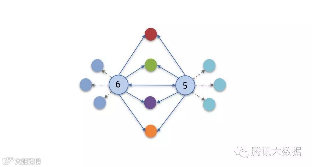 显而易见,用户5和6的共同好友数为4。这个计算貌似非常简单,但是当图的规模扩展到腾讯的级别:用户数(点)为十亿级别,关系数(边)为千亿级别时,那这个问题就一点都不简单了。