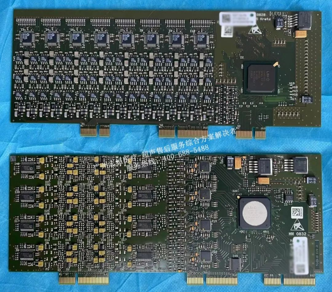 GE VOLUSON E8超声图像异常,出现亮片干扰,根据现象判断为发射接收板故障。