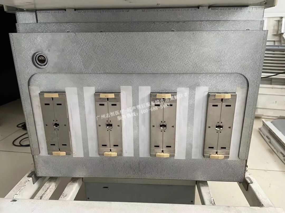 该机器的通道板共有32块,由16对RSR14和RST15的组合组成,而由故障现象仅能判断出是发射接收故障造成,而不能确切的知道是哪一块,所以只能一对一对地更换并上机观察进行排查。排查过程中需要来回的拆卸与安装,应尽量小心谨慎,避免损坏其板件或其接口插针等。